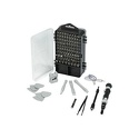 Комплектация- Отвертка-держатель для бит (1 шт)- Гибкий вал (1 шт)- Держатель для бит (1 шт)- Пинцет (1 шт)- Лопатка (3 шт)- Ключ для SIM карты (2 шт)- Магнит (1 шт)- Присоска (1 шт)- Медиатор (6 шт)- Биты 25 мм (98 шт)- Удлинитель для бит (1 шт)- Кейс (1 шт)