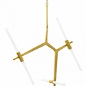 Подвесная люстра стиля модерн для гостиной, кабинета или спальни имеет размеры 1000x2230 мм. Арматура светильника окрашена в золотой цвет. Лампы в комплекте - отсутствуют. В светильнике применяются галогеновая лампа или светодиодная LED-лампа. Цвет плафонов - белый, с матовой поверхностью. Материал плафонов - стекло. Класс электробезопасности - I, степень пылевлагозащиты (IP) - 20. Максимальная мощность лампы (Вт) - 40. Светильник размещается на потолоке.